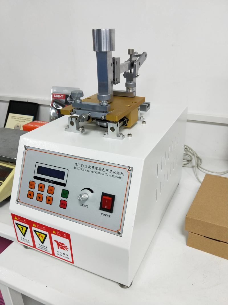 This machine test the degree of decolorization of dyeing leather after friction. It can used to test the leather color resistance to dry, wet and friction.